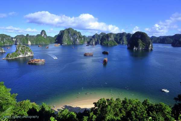 Từ trên cao nhìn xuống, vịnh Hạ Long như một bức tranh khổng lồ vô cùng sống động. Ði giữa Hạ Long, ta ngỡ như lạc vào một thế giới cổ tích bị hoá đá, đảo thì giống hình một người đang đứng hướng về đất liền (hòn Đầu Người), đảo thì giống như một con rồng đang bay lượn trên mặt nước (hòn Rồng), đảo thì lại giống như một ông lão đang ngồi câu cá (hòn Ông Lã Vọng), hòn Cánh Buồm, hòn Cặp Gà, hòn Lư Hương… Tất cả trông rất thực, thực đến kinh ngạc.