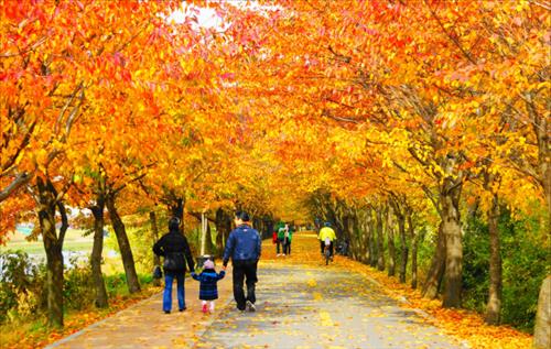 Mùa thu ờ Hàn Quốc đẹp như trong cổ tích, không chỉ có vẻ đẹp của lá vàng khiến người ta liên tưởng đến bức tranh “Mùa thu vàng” nổi tiếng của họa sĩ Levitan, mà còn điểm xuyến thêm màu đỏ của lá phong. Những mảng lá vàng, lá đỏ đan xen khắp nơi nơi, cùng với những thảm lá rụng dưới chân khiến cho quang cảnh trở nên lãng mạn và đẹp đến mê hồn vào dịp tháng 10 mỗi độ thu sang.